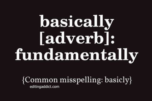 {Common misspelling: basicly}