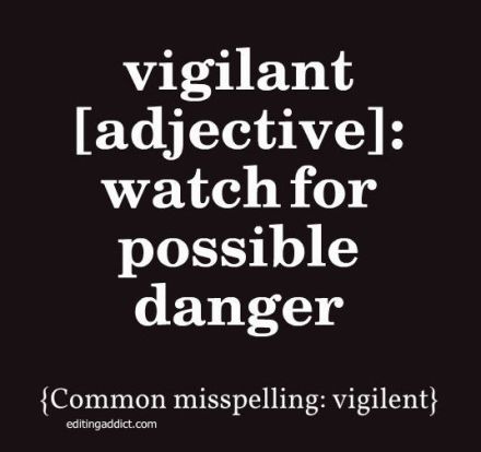 {Common misspelling: vigilent}